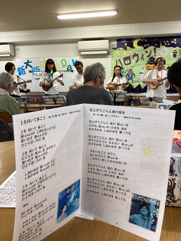 利用者様も皆様口ずさみながら穏やかな表情でお聞きになられています!